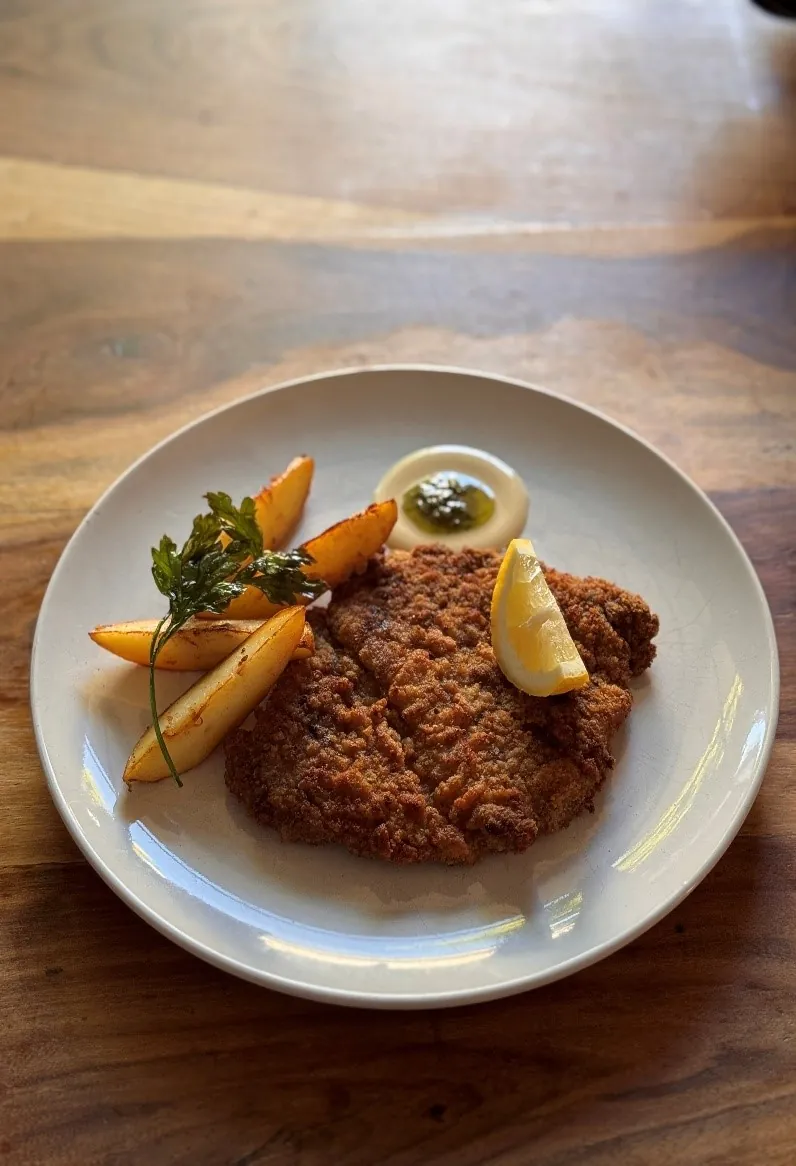 7. Serve the wallaby schnitzel hot with lemon wedges on the side. You can also pair it with a fresh aioli, roasted potato wedges, or your favourite vegetable side dish.